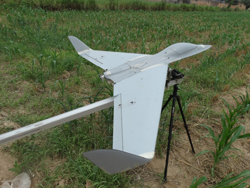 飛機(jī)放到彈射架上,操作員遙控檢查機(jī)翼、相機(jī)拍攝、降落傘靈敏度,然后將飛機(jī)拉到發(fā)射架末端,最后啟動(dòng)發(fā)動(dòng)機(jī)、按下發(fā)射手柄。伴著轟鳴聲,飛機(jī)迅速?gòu)椛涑鋈?,在空中盤旋一圈,又盤旋一圈,開始爬高,到達(dá)預(yù)定高度,飛機(jī)距離地面300米,遙控員開始切換飛機(jī)飛行狀態(tài),由遙控轉(zhuǎn)為自主飛行。