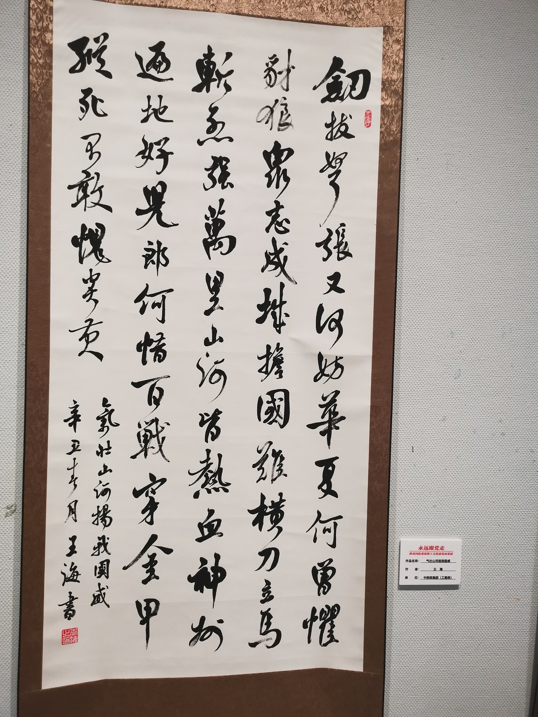 中陜核工業(yè)集團(tuán)工勘院,書(shū)法《氣壯山河揚(yáng)我國(guó)威》,作者王海;