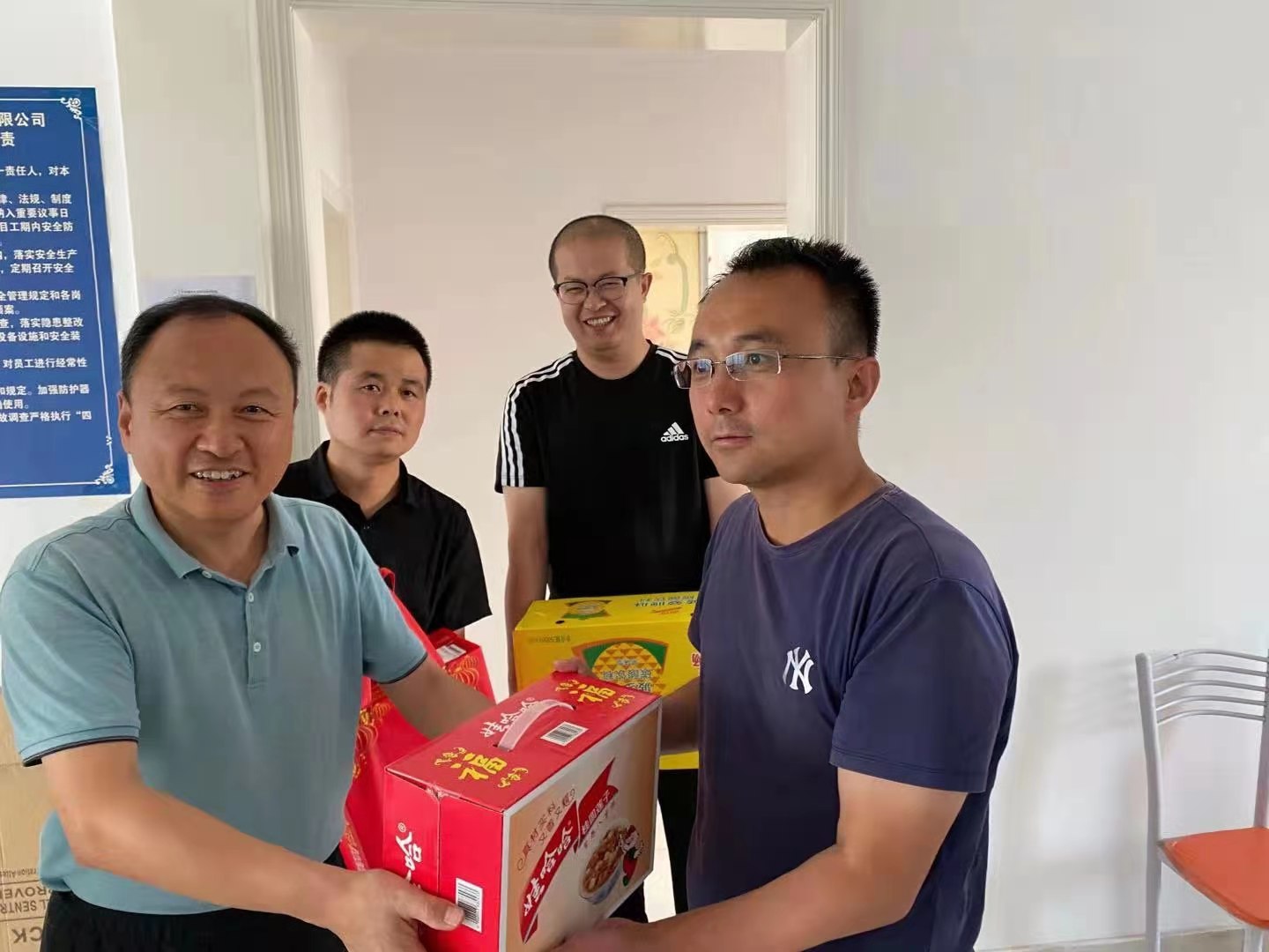 他們?yōu)檠籽琢胰障乱琅f奮斗在新疆一線的職工“送清涼”,給大家?guī)砹税藢氈?、王老吉涼茶等消暑慰問品?/span>