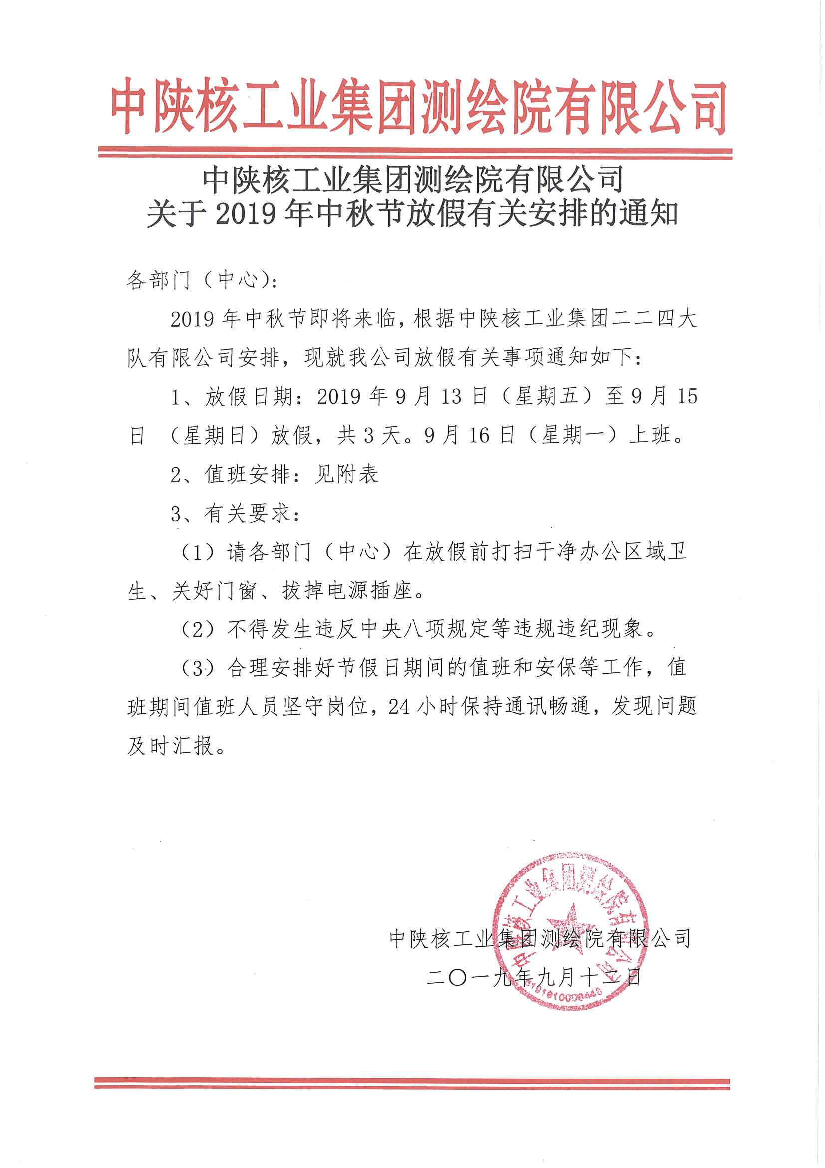關(guān)于2019年中秋節(jié)放假有關(guān)安排的通知